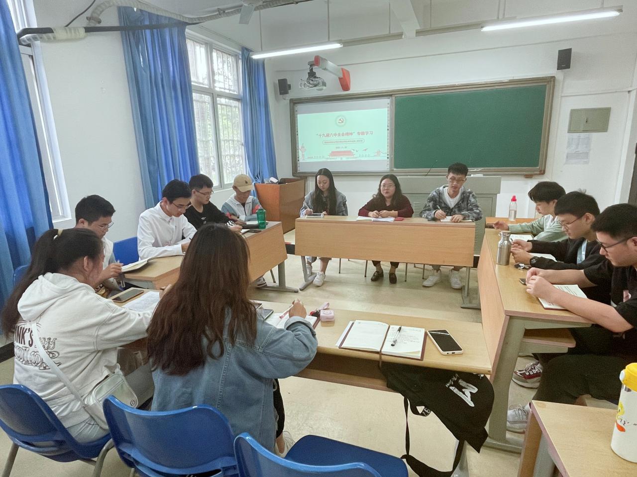 2021年11月30日,beat365英国官方网站(密码学院)本科生第二党支部在5号教学楼118教室专题学习了党的十九届六中全会精神,全体党员、发展对象代表参加了会议。