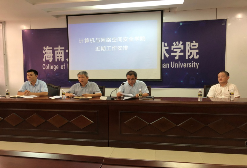 8月30日下午,计算机与beat365英国官方网站在原信息学院报告厅召开新学期全院教职工大会。学院党委书记邱锡光、副院长曹春杰(主持工作)、副院长王兆晖、党委副书记黄小欧出席会议并讲话,会议由党委副书记黄小欧主持。