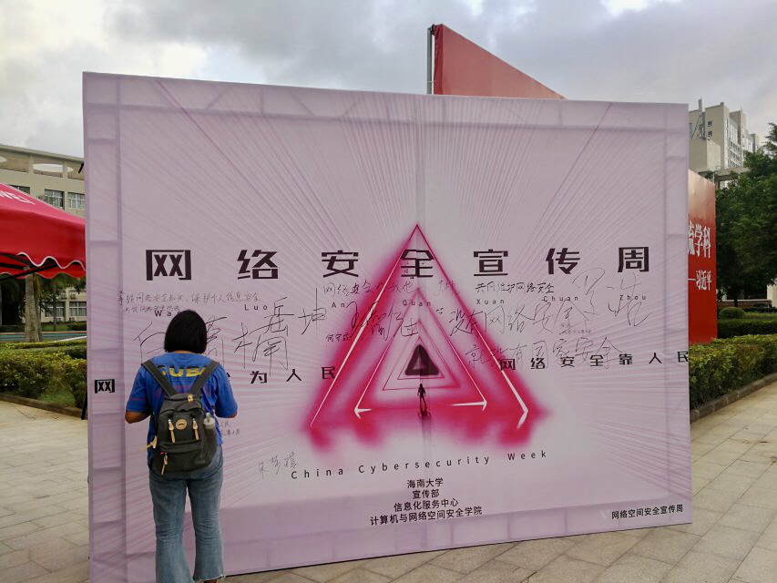 除此之外,原信息学院和教学楼等多地还播放了网络安全内容的电影,使得大家进一步理解了网络世界的含义,认识到了网络安全的重要性。除了丰富的网络安全校园宣传活动,同学们还可以通过关注“中国大学生在线”微信号或关注“dxs.moe. gov.cn/dati”网址,在9 月9日至10月31日这个时间段参加“全国大学生网络安全知识竞赛”。从而通过网络答题方式了解网络安全知识,提升网络安全防护技能。