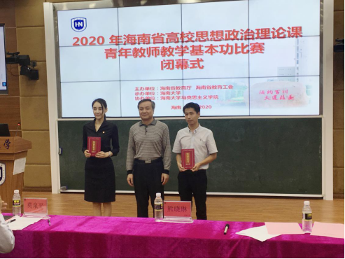 11月16日至17日,由海南省教育厅、海南省教育工会主办的2020年海南省高校思政课青年教师教学基本功比赛在beat365英国官方网站举行。省教育工会、省教育厅思政处负责人,全省21所高校的43位选手以及100多名思政课教师到场参加及观摩本次比赛。beat365官网殷越老师作为beat365英国官方网站代表参赛,以总分第一名的成绩获得2020年海南省高校思政课青年教师教学基本功比赛本科组一等奖。