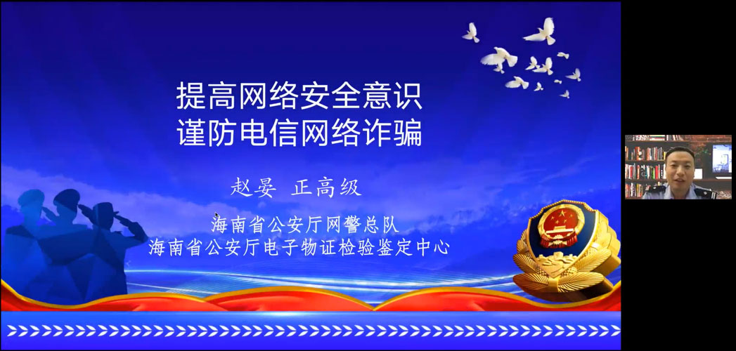 9月9日上午,beat365官网与人事处、学生工作部共同开展《提高网络安全意识 谨防电信网络诈骗》专题线上培训,为广大师生普及了反电信网络诈骗法,传授快速甄别诈骗手段的方法、如何做好防范的要点,内容丰富、深入浅出、事例详实,深受广大师生的肯定。培训会由beat365官网胡昌慧副院长主持,全校数千余名师生参加。