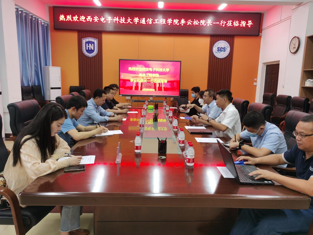 2023年5月9日,西安电子科技大学通信工程学院执行院长李云松、党委副书记沈强一行莅临beat365官网指导交流,beat365官网执行院长曹春杰、党总支书记陈广锐、副院长周晓谊、张殿及系主任李益红、徐紫枫出席了交流会。