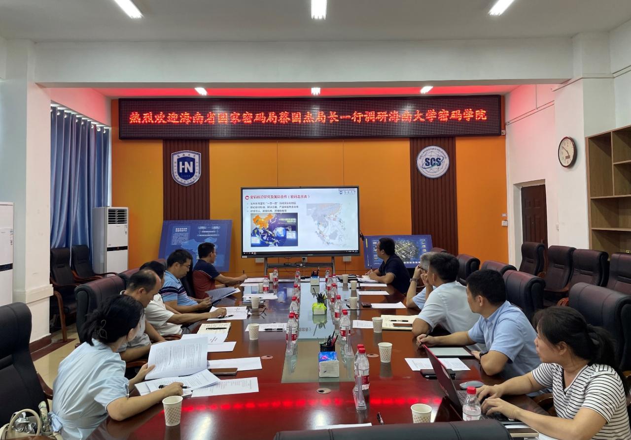 在beat365英国官方网站党委常委、副校长邱锡光,学院党总支书记陈广锐、执行院长曹春杰的陪同下,蔡国杰局长一行参观了beat365英国官方网站密码科普展厅,听取了beat365英国官方网站密码学院建设汇报和海南省商用密码协会成立大会筹备情况汇报。