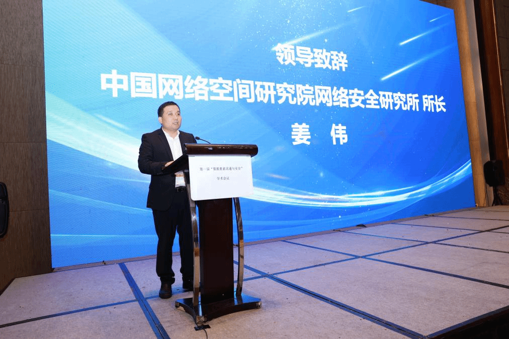 中国网络空间研究院网络安全研究所姜伟所长致辞,他简要介绍了目前国家数据法律法规、基础制度体系建设情况,总结了我国数据产业和数字经济的发展情况和存在的安全风险等问题,就如何加强数据要素流通与安全治理体系能力建设,提出坚持安全发展、坚持依法治数、坚持系统治理、坚持技术驱动,为促进数据要素安全有序流通和建设网络强国、数字中国贡献力量。