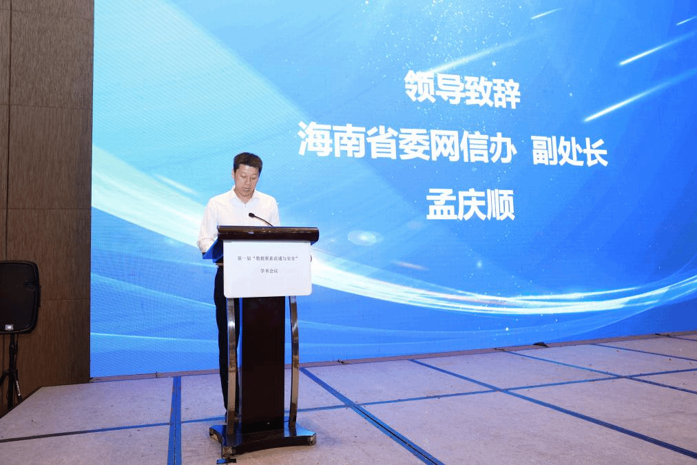 海南省委网信办孟庆顺副处长致辞。他指出,促进数据要素流通需要释放数据要素价值并完善数据治理制度。当前是中国特色自由贸易港建设的关键时期,开展跨境数据安全有序流通压力测试,持续提升集成创新能力,是推动海南自由贸易港高质量发展的重要举措,期待各位与会专家对数据安全有序流通积极出谋划策,共同推动自贸港数据安全有序发展。
