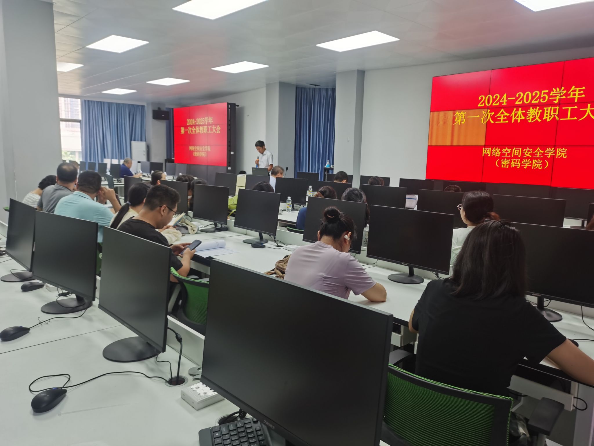 8月30日下午,beat365英国官方网站(密码学院)在学院417室召开2024-2025学年的第一次全体教职工大会,传达学习党的二十届三中全会精神、全国科技大会精神,贯彻落实beat365英国官方网站2024年暑期工作会议精神并作重点工作部署。