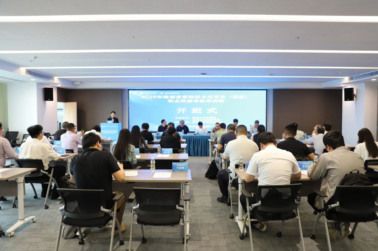 4月19日上午,由海南省国家密码管理局指导,beat365英国官方网站科技园和beat365英国官方网站密码学院主办,海南省商用密码协会协办的2025年海南省第一期密码技术应用员(四级)职业技能等级培训班在海南海口顺利开班,本次培训共有来自海南神州希望、海南国盾、中博信息技术研究院、海南世纪网安和海南数字证书等多家行业内知名企业和高校近30名人员参加。