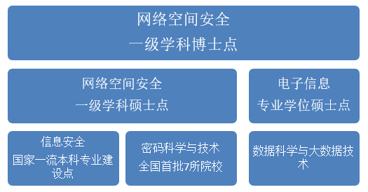 学院着力实施“人才强院”战略,建设了一支含院士、国务院特贴专家、省“515人才工程”、南海名家等人才称号的一流师资队伍。拥有网络空间安全一级学科博士点;网络空间安全一级学科硕士点和电子信息类专业硕士点;信息安全、密码科学与技术、数据科学与大数据技术3个本科专业。建立了“本科-硕士-博士”一体化人才培养体系。